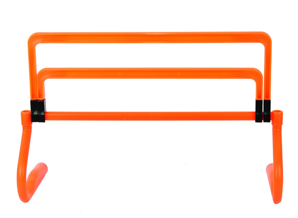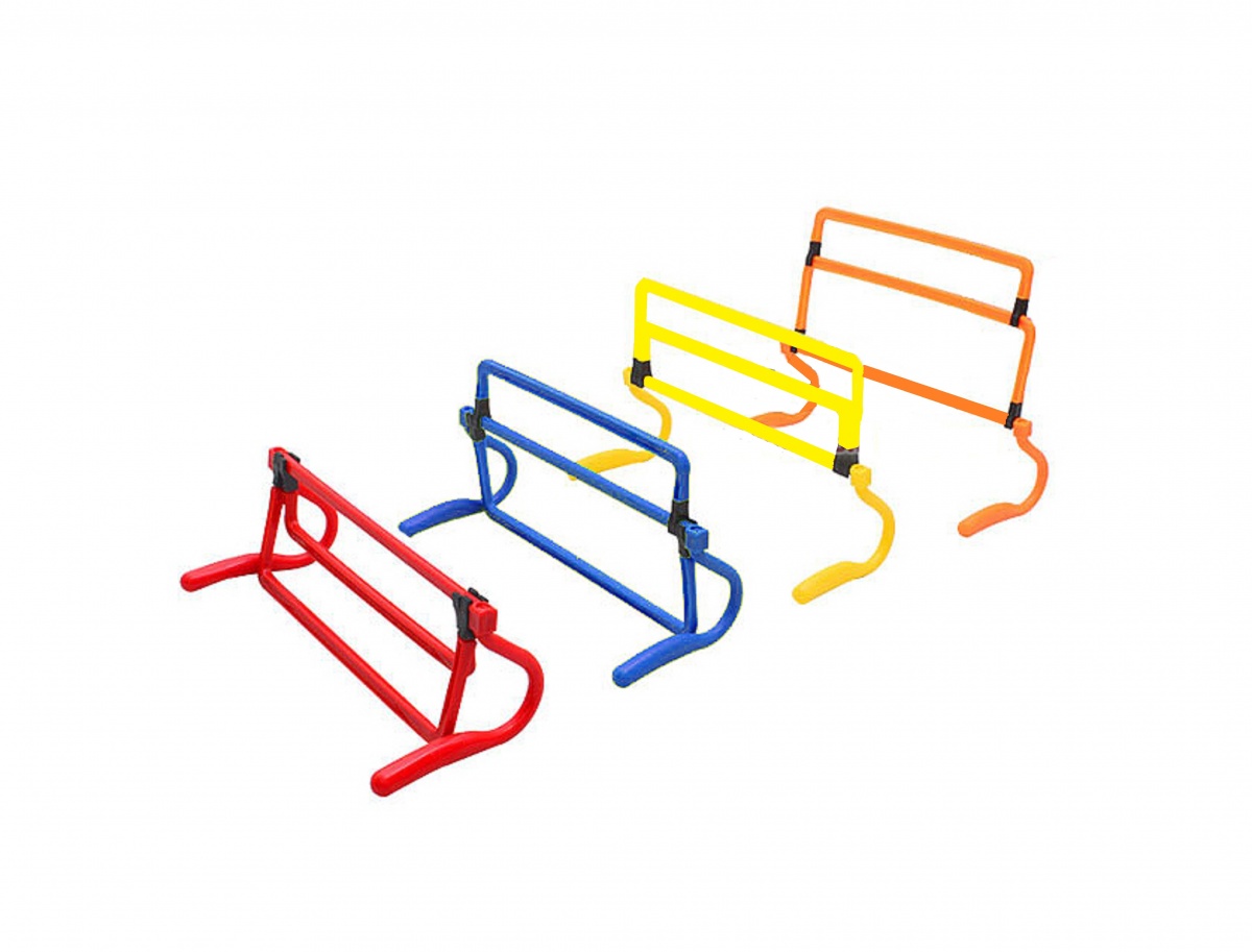 Барьер для отработки техники бега регулируется на четырех уровнях высоты (15, 22, 28, 35), легко и компактно собирается. Вследствие множества вариаций применения он способствует разработке и улучшению навыков в большинстве различных упражнений, например, развивает контроль и скорость перемещения. Он маловесный и не занимает много места при хранении. Размер такого барьера 55×20х15-35 см.