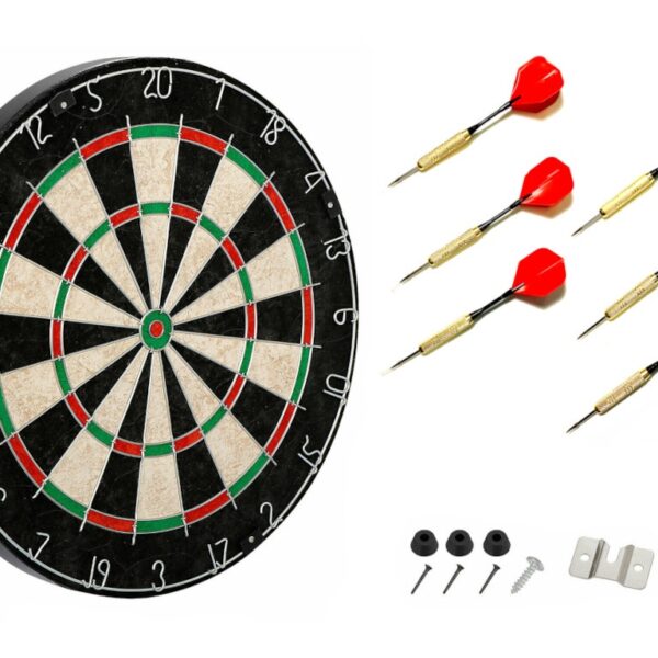 Благодаря подвесному настенному креплению разместить игру можно и дома, и в офисе, и даже на природе. Мишень сделана из пластика. В комплект входит 6 дротиков. Игра в дартс развивает глазомер, координацию движений.