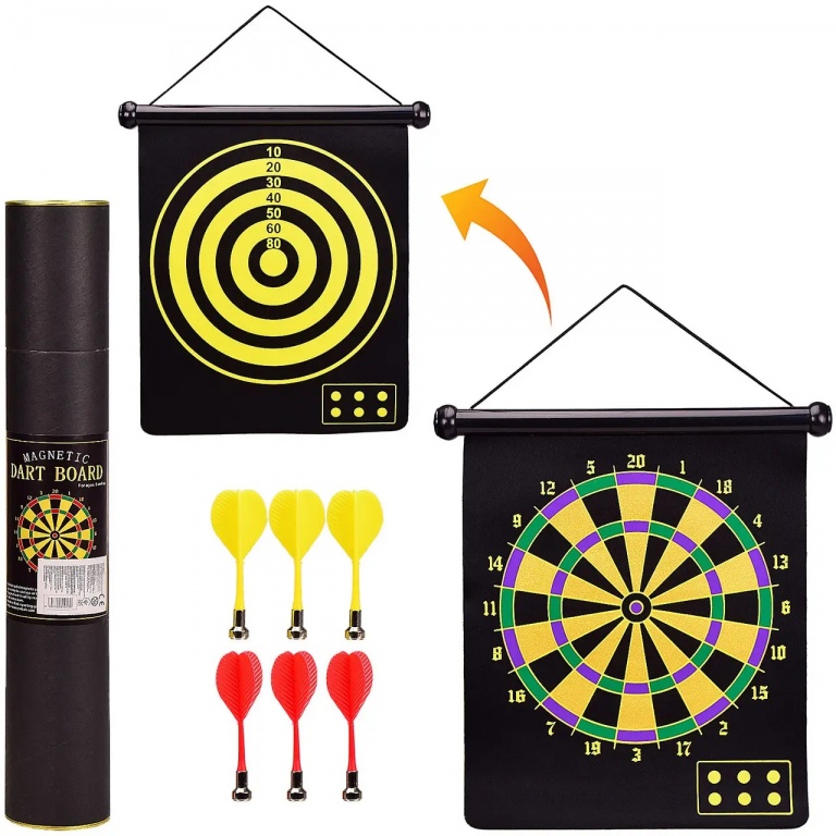 Данный дартс безопасен для игроков, так как дротики цепляются к мишени с помощью магнита.