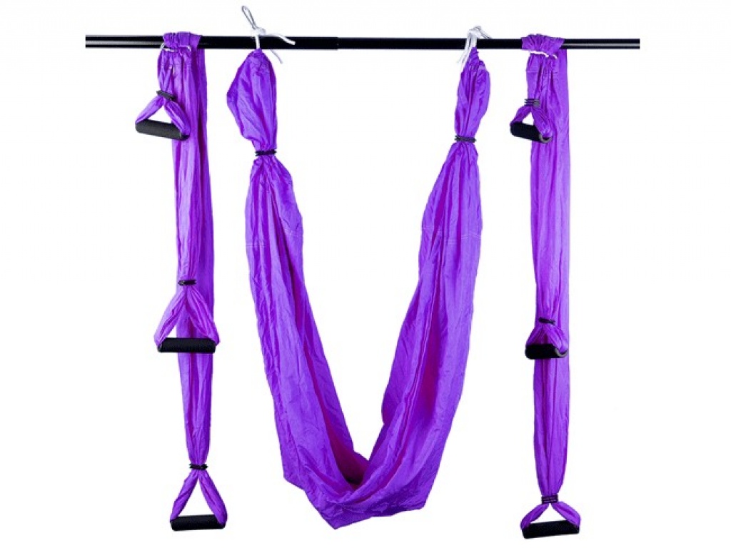 Гамак изготовлен из легкой, тонкой и в тоже время очень прочной синтетической ткани. Данная ткань хорошо отталкивает загрязнения и очень простая в уходе. Применяется для занятий аэройогой. В комплект карабины для креплений не входят.