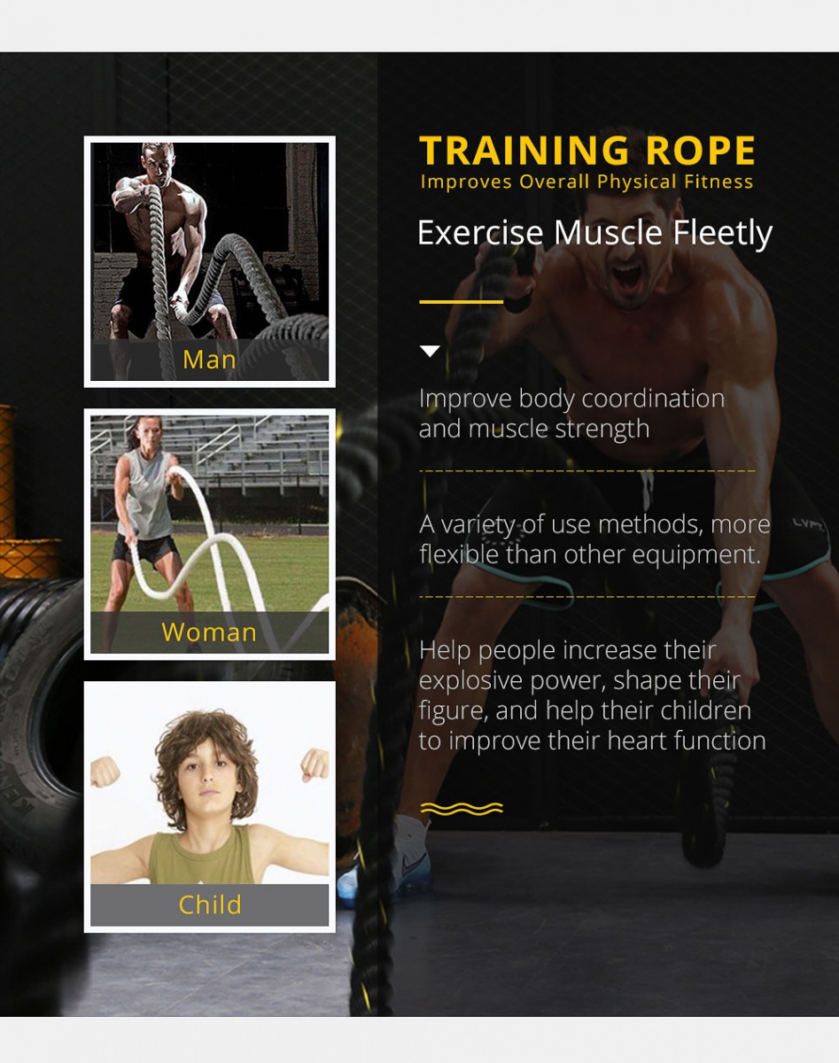 Тренировочные канаты-отличный способ сжигать массивные количества калорий за короткое время. Кроме того, этот простой элемент оборудования может легко увеличить интенсивность ваших тренировок. Работа с тренировочными канатами поможет вам сделать следующее: сжигать большое количество калорий; повысьте интенсивность ваших тренировок, увеличьте сжигание жира, улучшите выносливость и развить силу сцепления.