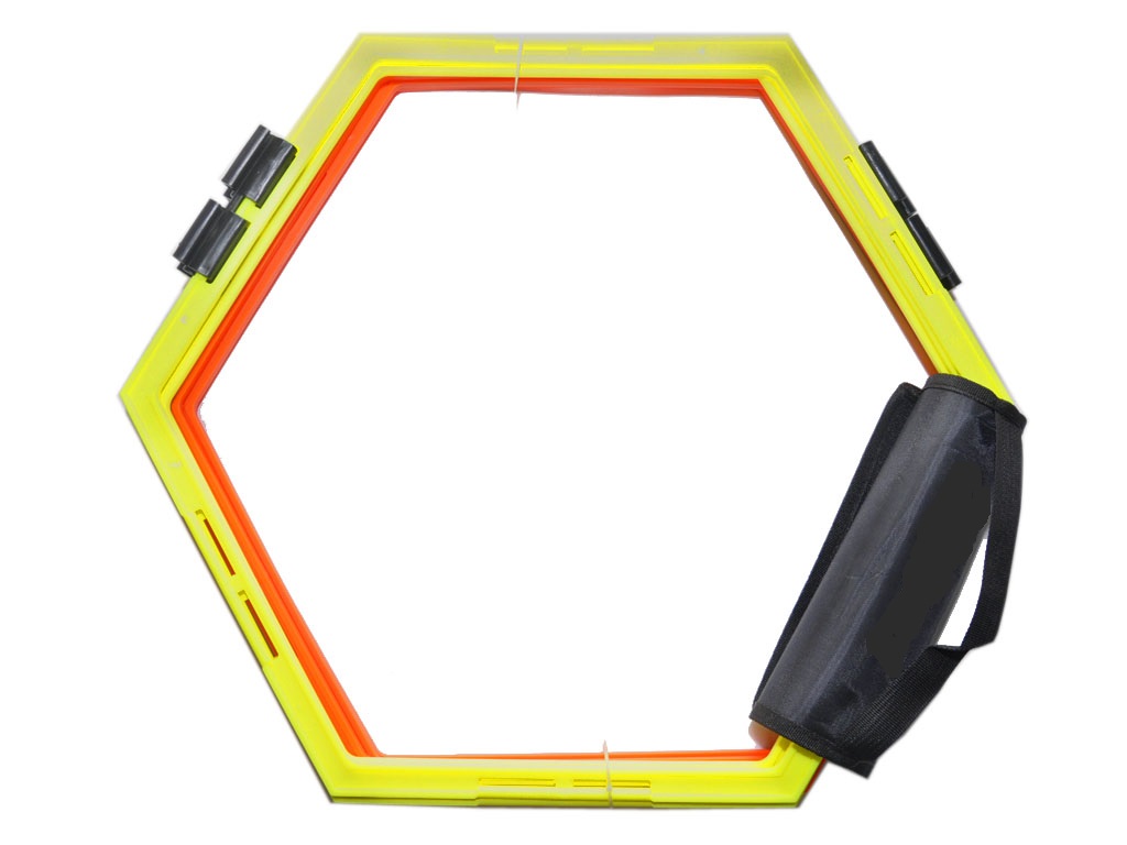 Координационная лестница “Шестиугольник” – это усовершенствованный вариант координационной лестницы. Предназначена для усовершенствования координационных способностей. В наборе 6 шестиугольников с боковыми креплениями: 3 оранжевого цвета, 3 жёлтого цвета и ручка чехол для переноски. Диаметр внутренний шестиугольника – 50 см.