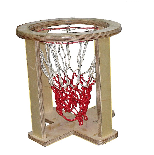 Корзина, выполнена из фанеры с сеткой внутри (по центру корзины) для выполнения упражнений на точность попадания (забрасывания) мяча в цель, горизонтального бросания мяча.