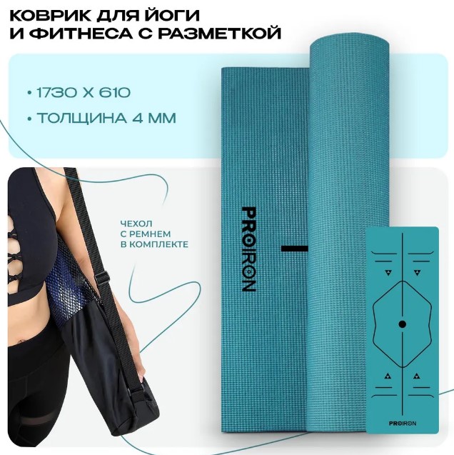 Коврик для йоги и фитнеса Proiron 1730x610x4 / К1736104ТС (темно-синий)