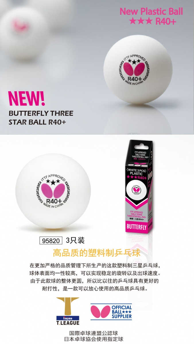 Мяч н/тенниса Butterfly R40+, 3 звезды, (3 шт/упак)