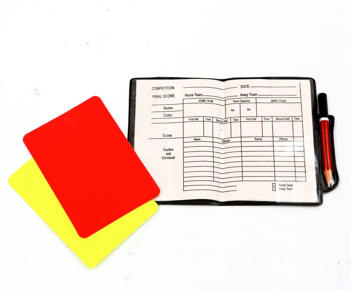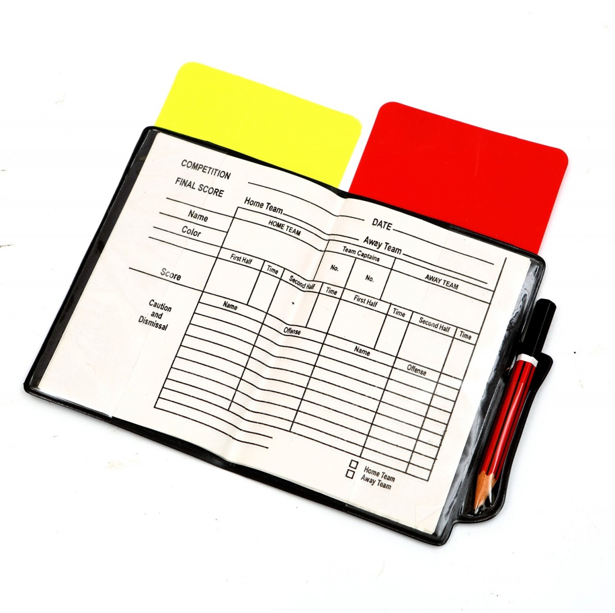 Набор карточек для футбольного арбитра. В комплекте: 1 карандаш, 1 карточка “жёлтая”, 1 карточка “красная”, блокнот для записей