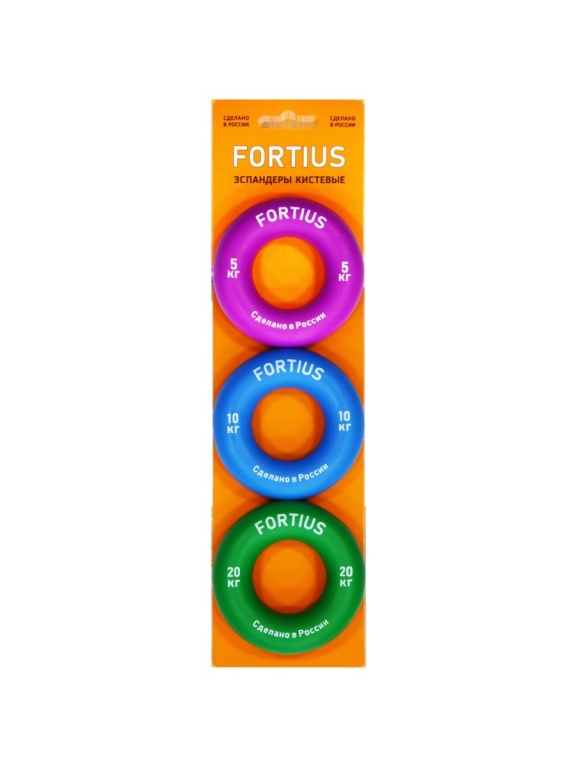 Набор кистевых эспандеров FORTIUS 3шт. (5, 10, 20 кг) создан из гипоаллергенного термоэластопласта для развития силы пальцев и запястья. Эспандер рекомендуется для укрепления рук, улучшения кровообращения. Особенно полезно использовать эспандер людям с нарушениями периферийного кровообращения, заболеваниями суставов, гипертонии, страдающим бессонницей, занимающимся умственным трудом. Спортсменам для физического развития мышц кистей рук, рекомендуется постепенно увеличивать нагрузку. Данный набор эспандеров обладает нагрузками в 5кг, 10 кг, 20 кг