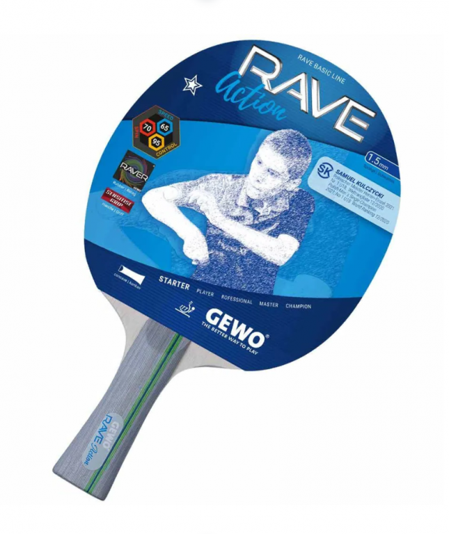 Недорогая ракетка с хорошими характеристиками. Ракетка GEWO RAVE ACTION – идеальная ракетка для начинающих игроков и любительского уровня. Благодаря GEWO SENSETISE-Grip-System чрезвычайно удобная в использовании и управляемая ракетка также отлично ложится в руку и обеспечивает прекрасное ощущение контроля.
