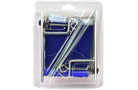 В комплект входит: сетка с нитью для натяжения, два металлических кронштейна с винтовым креплением, прибор для измерения высоты и натяжения сетки.