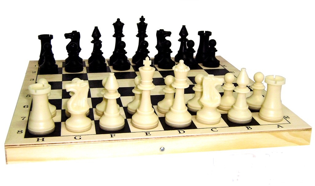 Шахматы обиходные пластиковые в деревянной коробке, 02-105