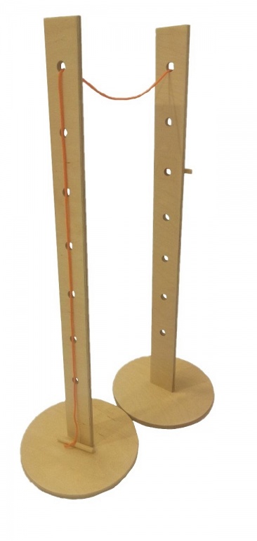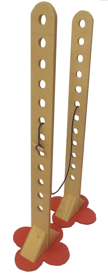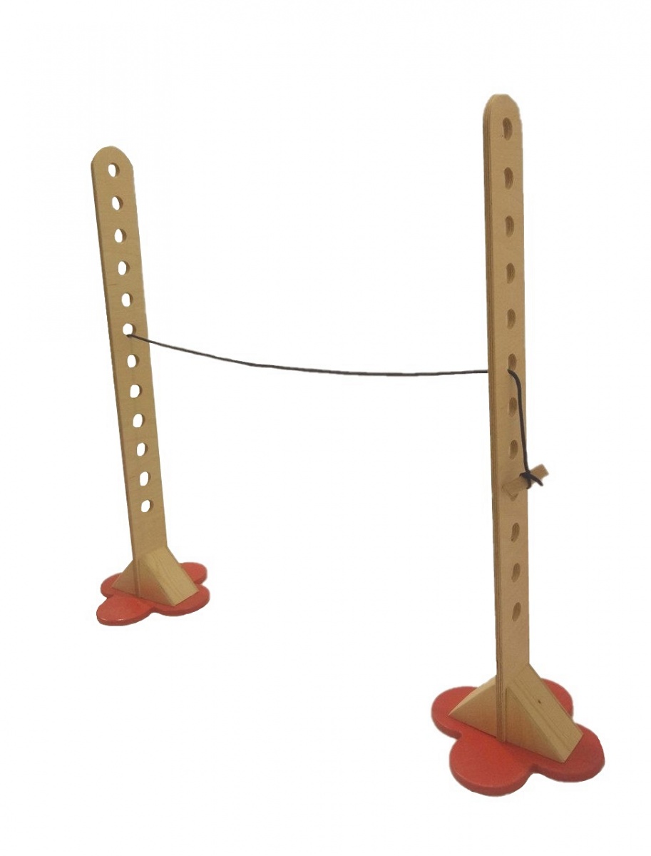 Сборная конструкция, состоящая из двух вертикальных стоек с горизонтальной веревкой яркого цвета длиной 3 м (заменяет жесткую планку). На стойке 12 вертикальных отверстий  для перестановки веревки.